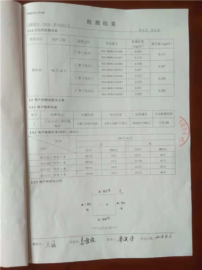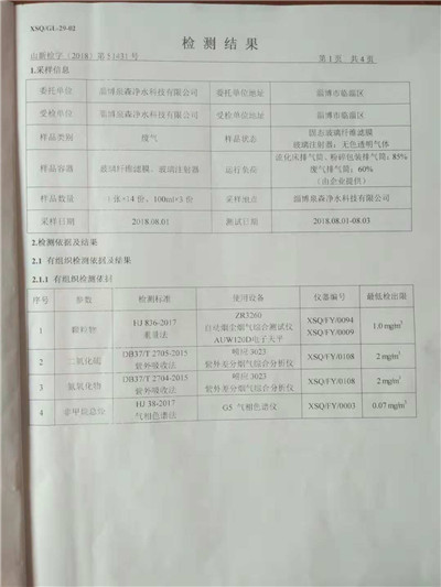 淄博泉森2018年10月8月環(huán)境檢測結(jié)果公示